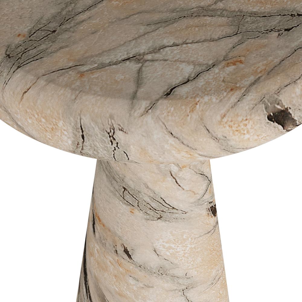 With a cinched waist and floating top, this bullnose design takes its inspiration from mid-century Italian sculpture. Crafted of concrete, it is both luxe and surprisingly lightweight. The Zahara's marble-like façade is finished in mojave through a process called hydrographics, assuring each piece will vary slightly in color and veining.