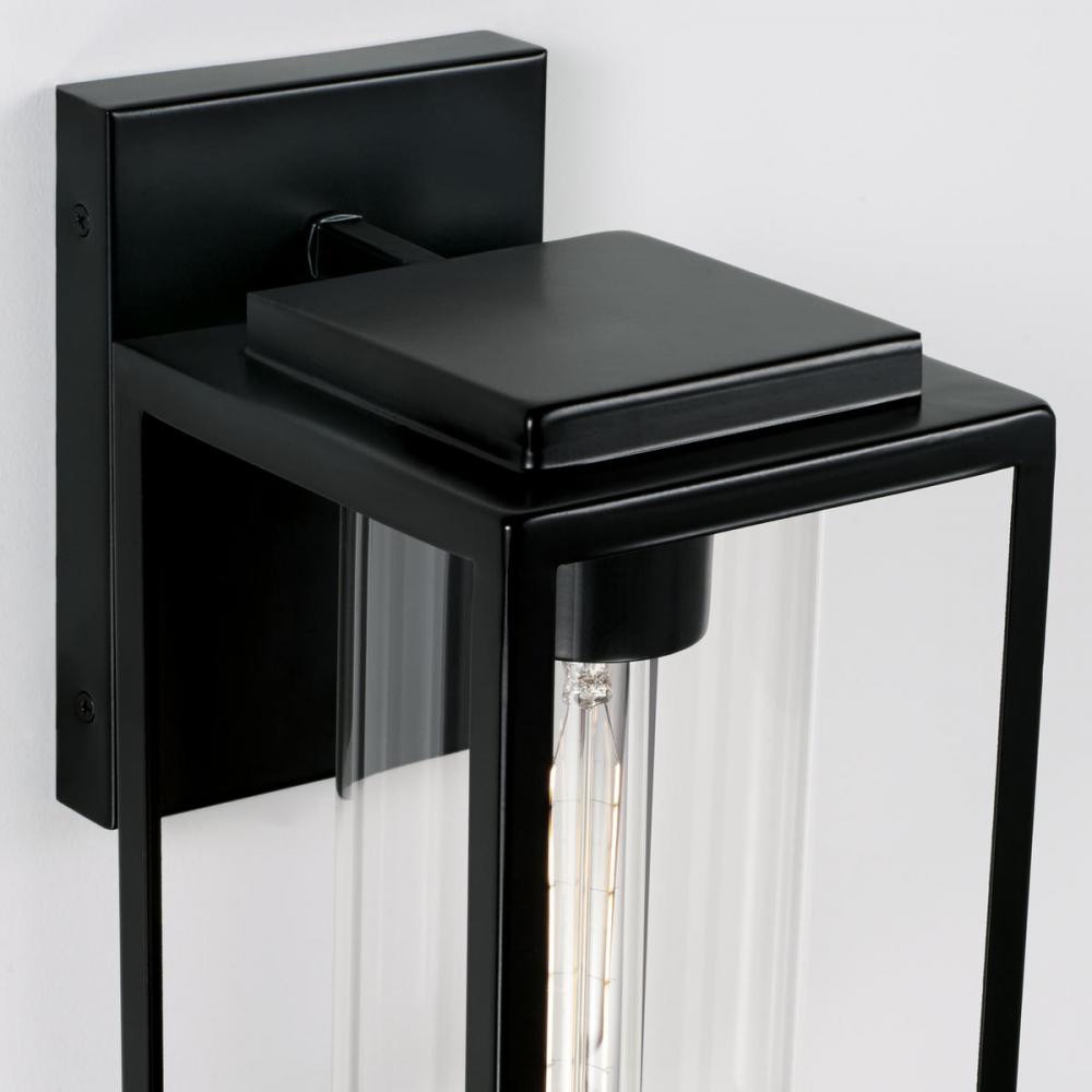 With clean lines and simple style, the Kessler Wall Lantern complements a variety of styles from industrial to minimalist. The clear glass cylinder and Matte Black finish invite a modern aesthetic to any outdoor area.