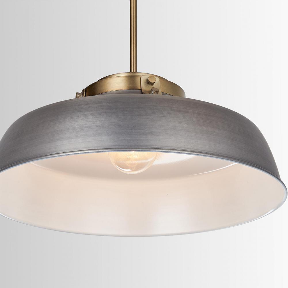 1-Light Industrial Metal Shade Pendant - Antique Nickel and Aged Brass with White Interior