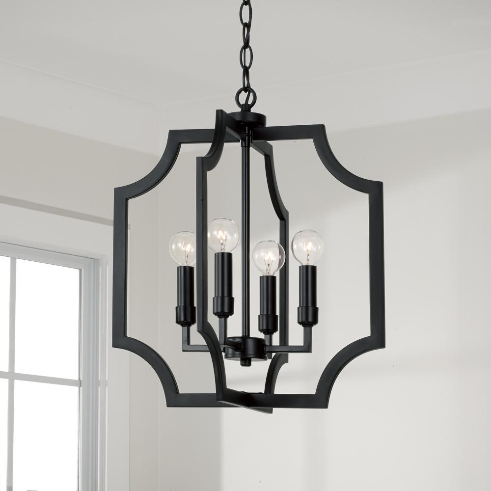 16"W x 18.50"H 4-Light Foyer Lantern Pendant in Matte Black