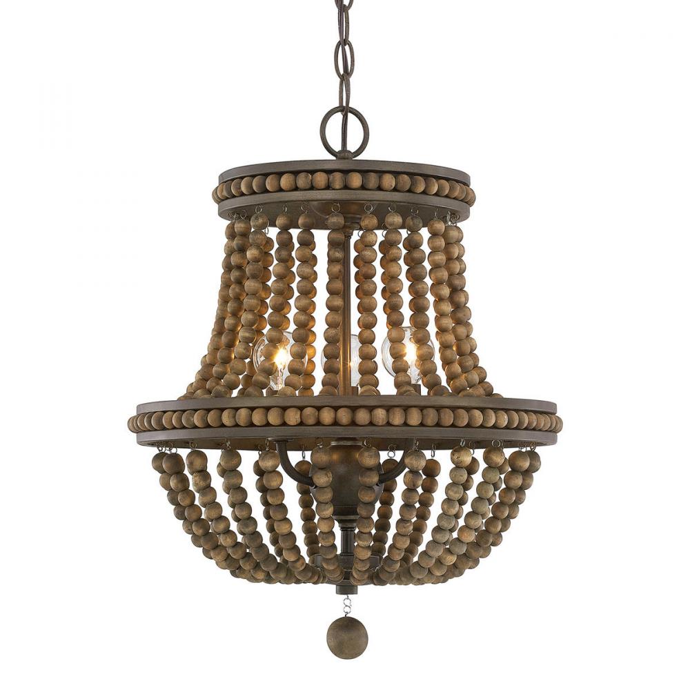 3-Light Chandelier with Wood Beads and Finial