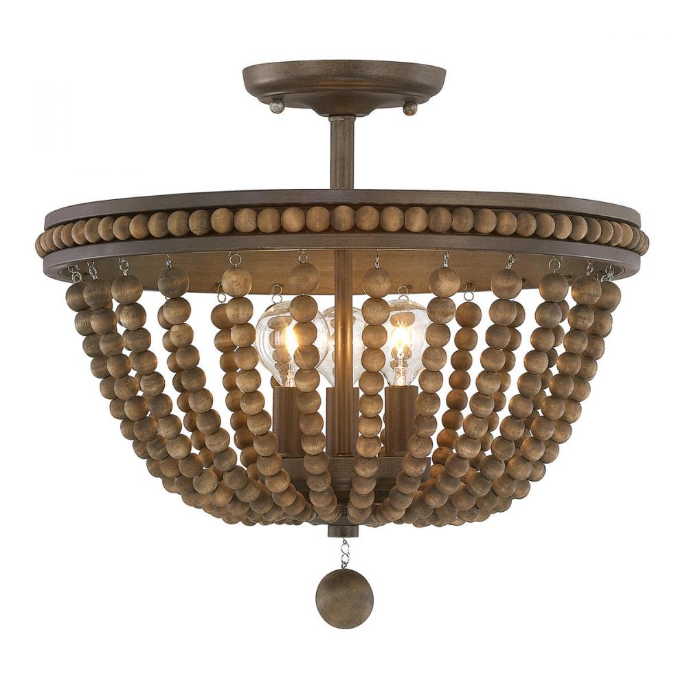 3-Light Semi-Flush Mount with Wood Beads and Finial