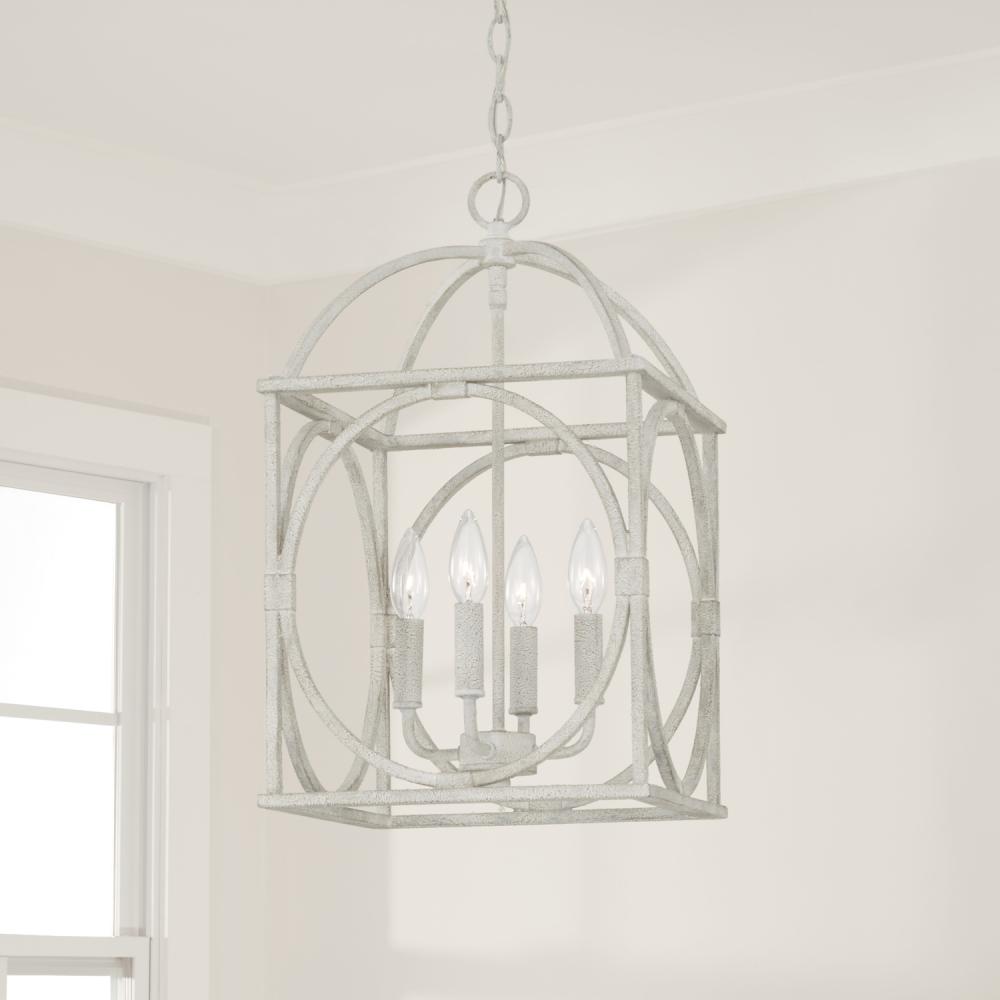 With an airy, architectural silhouette, the Brea 4-Light Foyer Lantern evokes elegant, transitional style. The open frame is accented with circular patterns, and the Sand Dollar finish brings texture and creates instant character.
