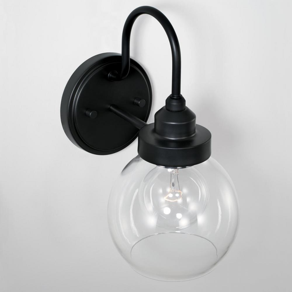 APPLICATIONS: Rated for damp locations, perfect for a hallway/stairway, foyer/entryway, kitchen, home office, dining room, living room or bedroom. The allure of this matte black sconce is the bulb-hugging clear glass shade, creating an instant classic