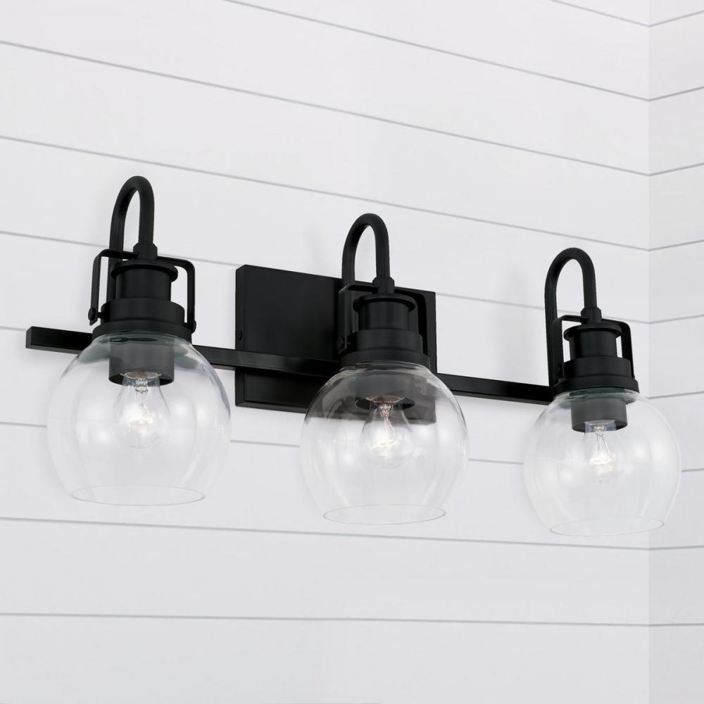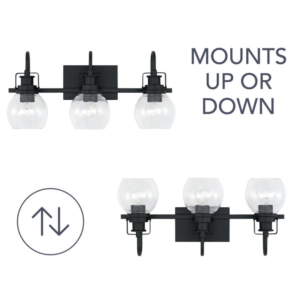 APPLICATIONS: Rated for damp locations, perfect for bathrooms and powder rooms. Combining timeless farmhouse/industrial matte black design with an entrancing bulb-hugging clear glass shade, creating an instant classic