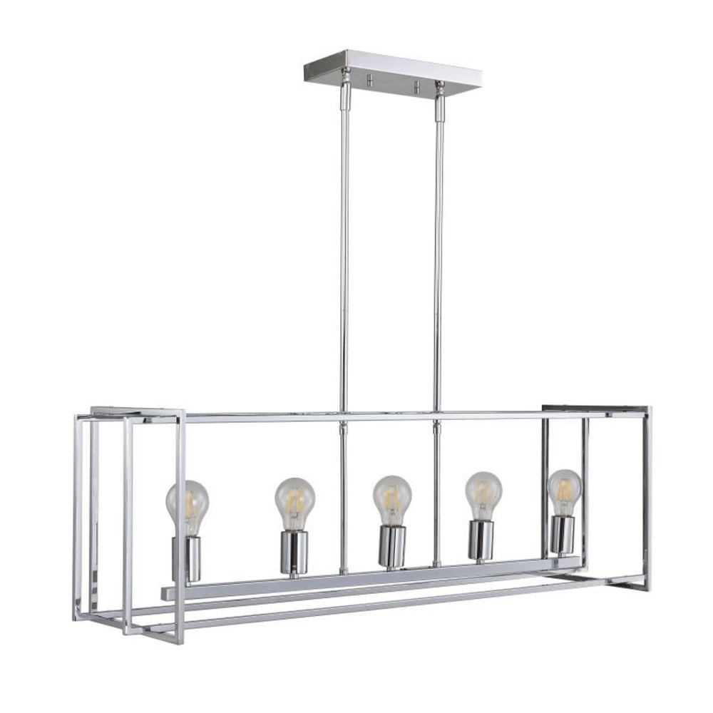 Transform your space with the Avista Lighting 5-Light Korson Pendant. Featuring a chic Chrome metal finish, open linear frame, and five dimmable bulbs, this modern pendant light enhances any decor. Adjustable height lets you create the perfect ambiance. Illuminate with Avista.
