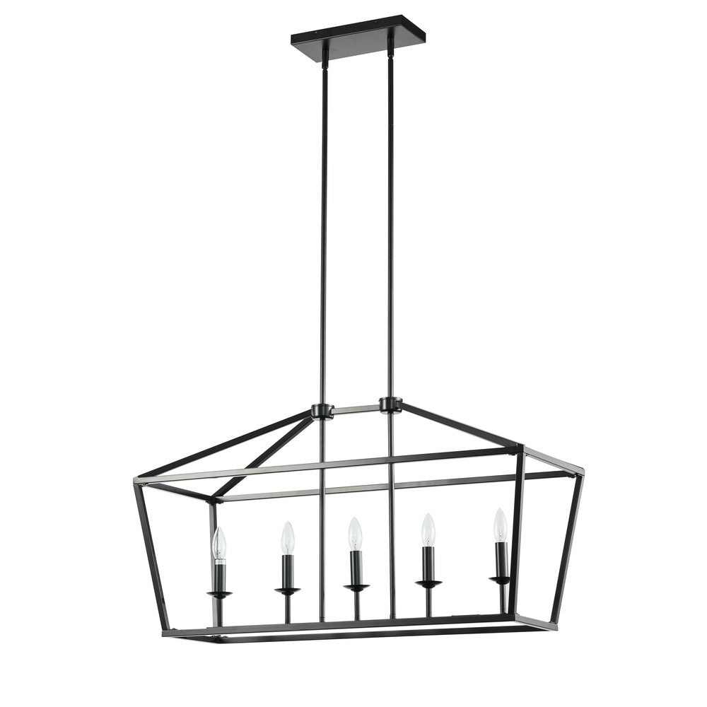 Elevate your space with the Stratford Linear Chandelier by Avista Lighting. This 5-light fixture features a chic open cage design in a Black metal finish. With adjustable height and dimmable lights, it's perfect for creating the ideal ambiance. Illuminate your home with elegance and style.