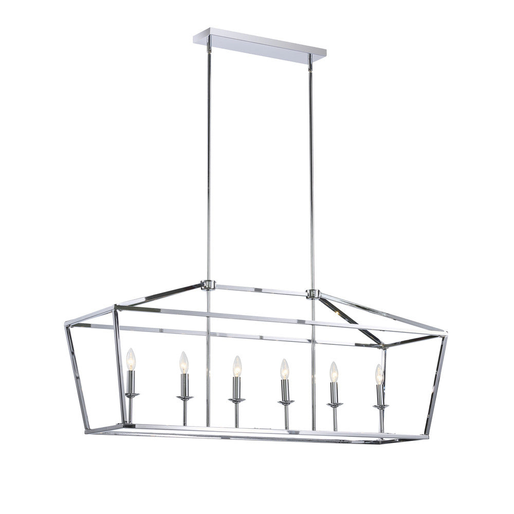 Elevate your space with Avista Lighting's Stratford Linear Chandelier. Crafted with a striking metal open cage design and a luxurious Chrome finish, this fixture exudes elegance. With six dimmable lights and an adjustable height feature, it offers both functionality and style, making it a perfect addition to any contemporary or traditional setting. Illuminate your space with sophistication and bring a warm ambiance to your home with the Stratford Linear Chandelier.