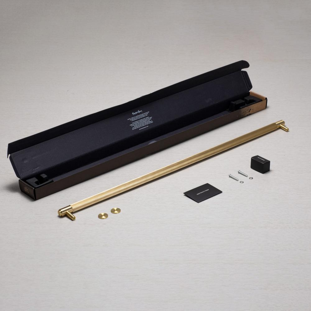 A closet bar made from solid smoked bronze. This closet bar features our signature, diamond-cut, cross knurl pattern and is refined by hand.