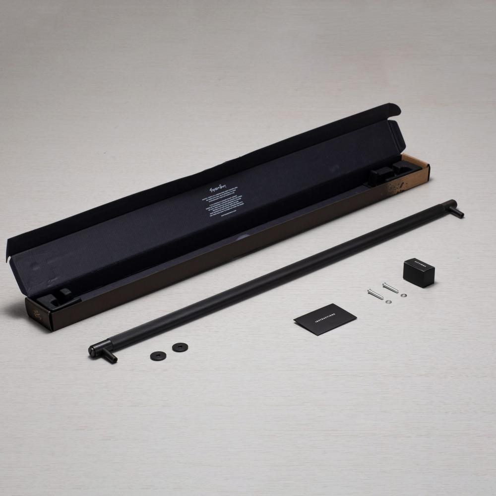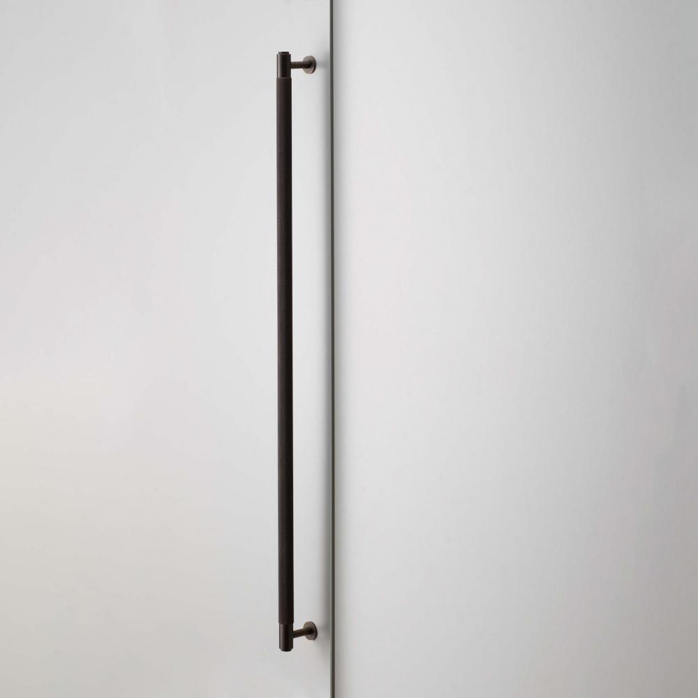 A closet bar made from solid smoked bronze. This closet bar features our signature, diamond-cut, cross knurl pattern and is refined by hand.