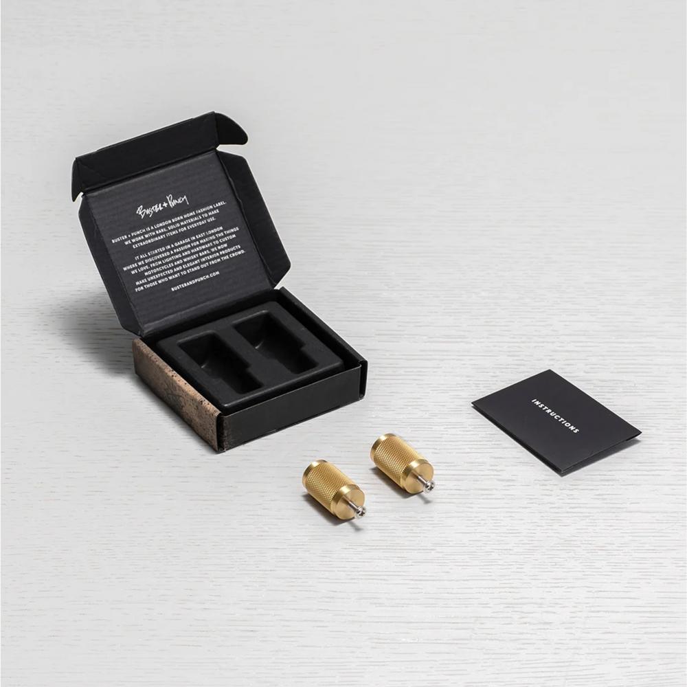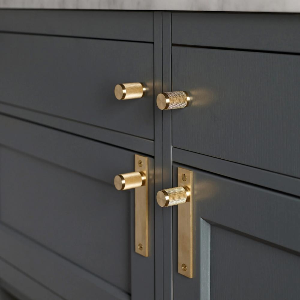 A pair of furniture knobs made from solid brass. These knobs feature our signature, diamond-cut, cross-knurl pattern and are refined by hand.