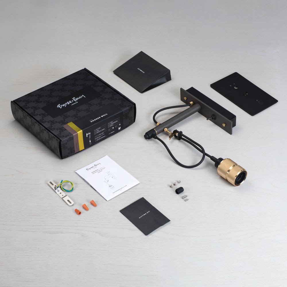Wall light with graphite base and solid metal details featuring our cross-knurl pattern, no shade. Can be fitted as standalone or connected to a US outlet box.