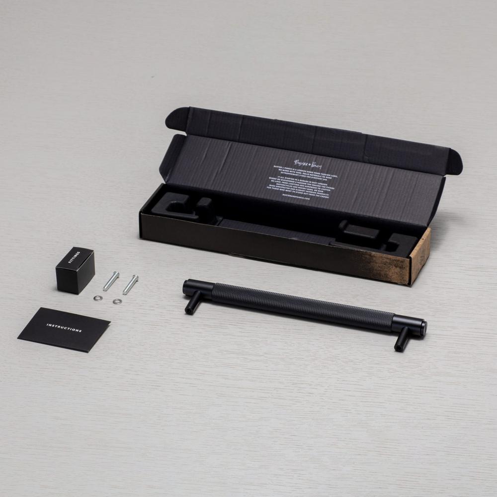 A large pull bar made from solid metal and featuring our cross-knurl pattern.
