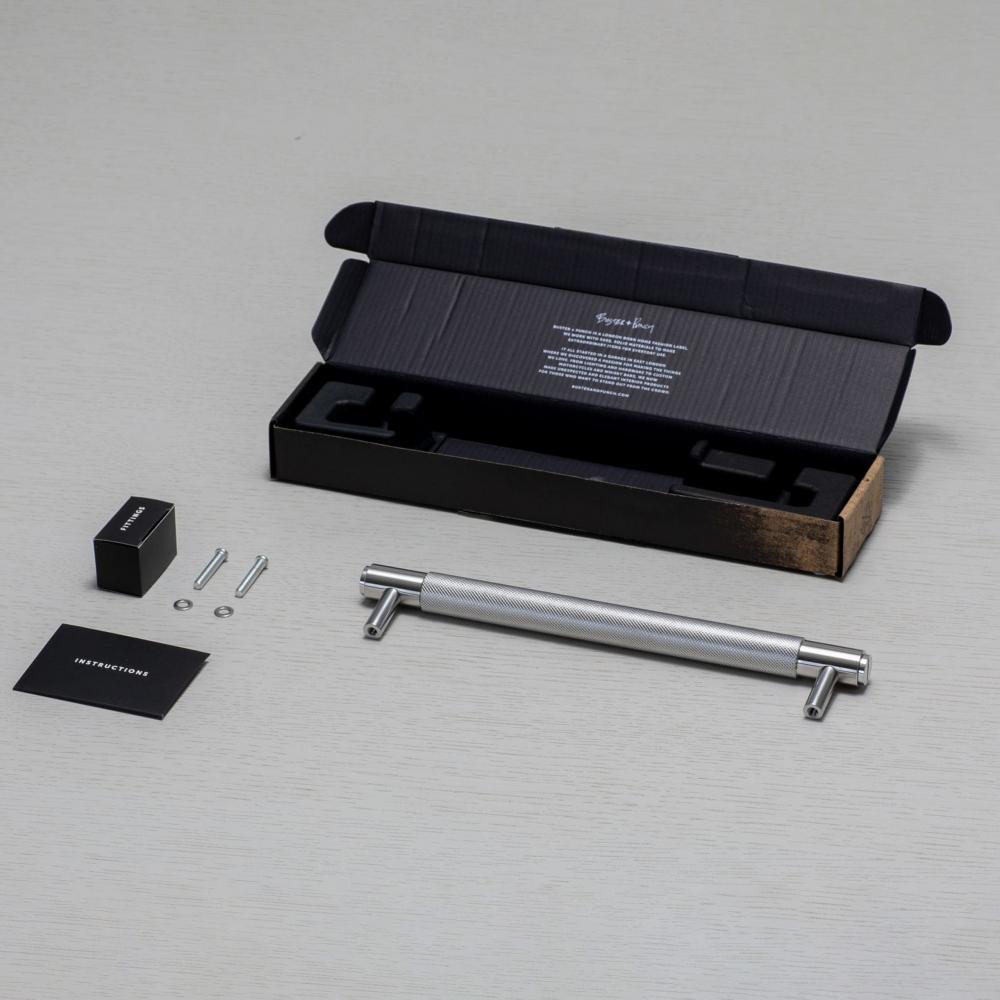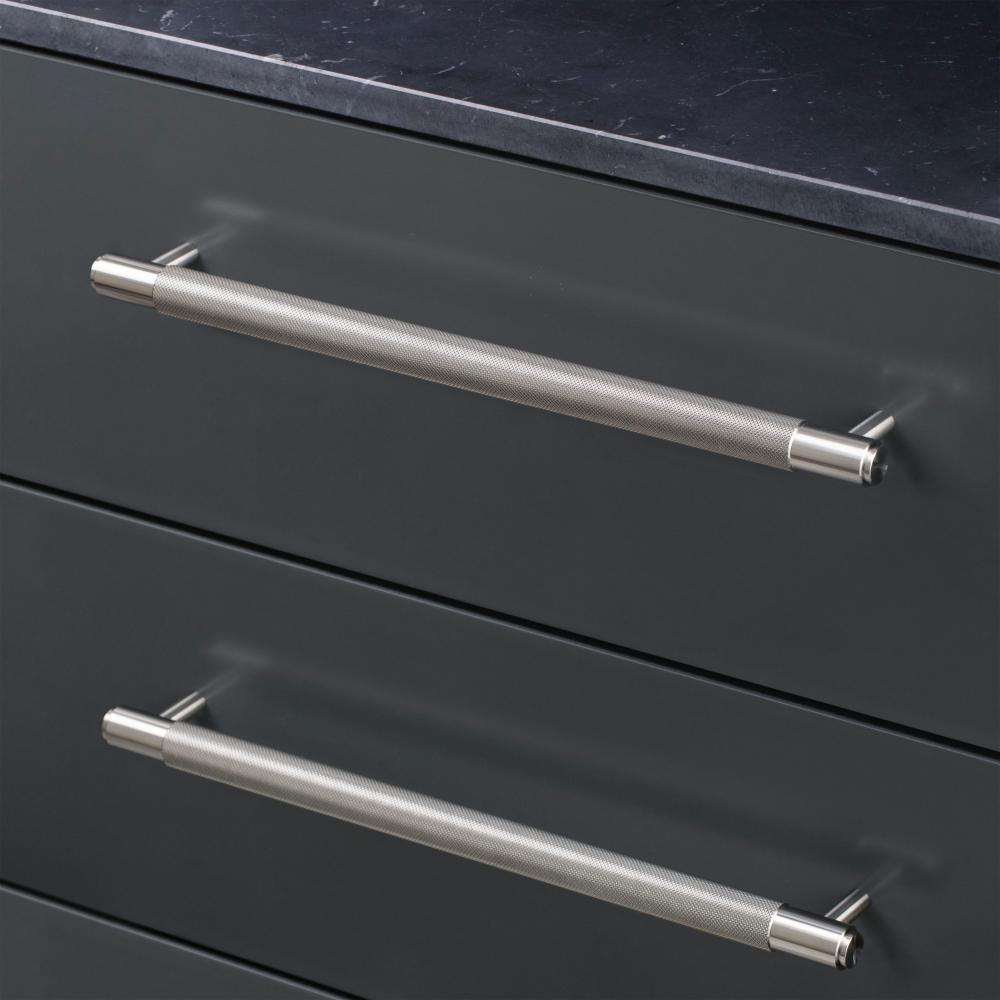 A large pull bar made from solid metal and featuring our cross-knurl pattern.