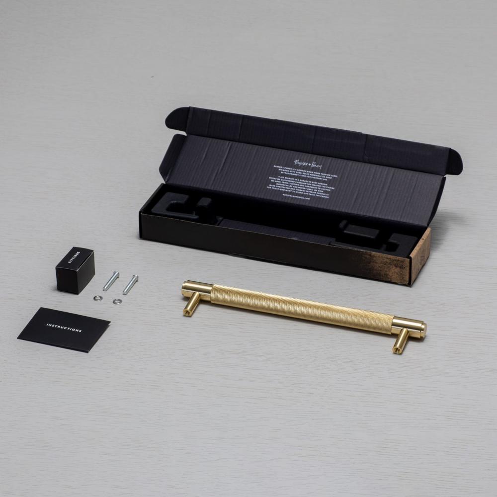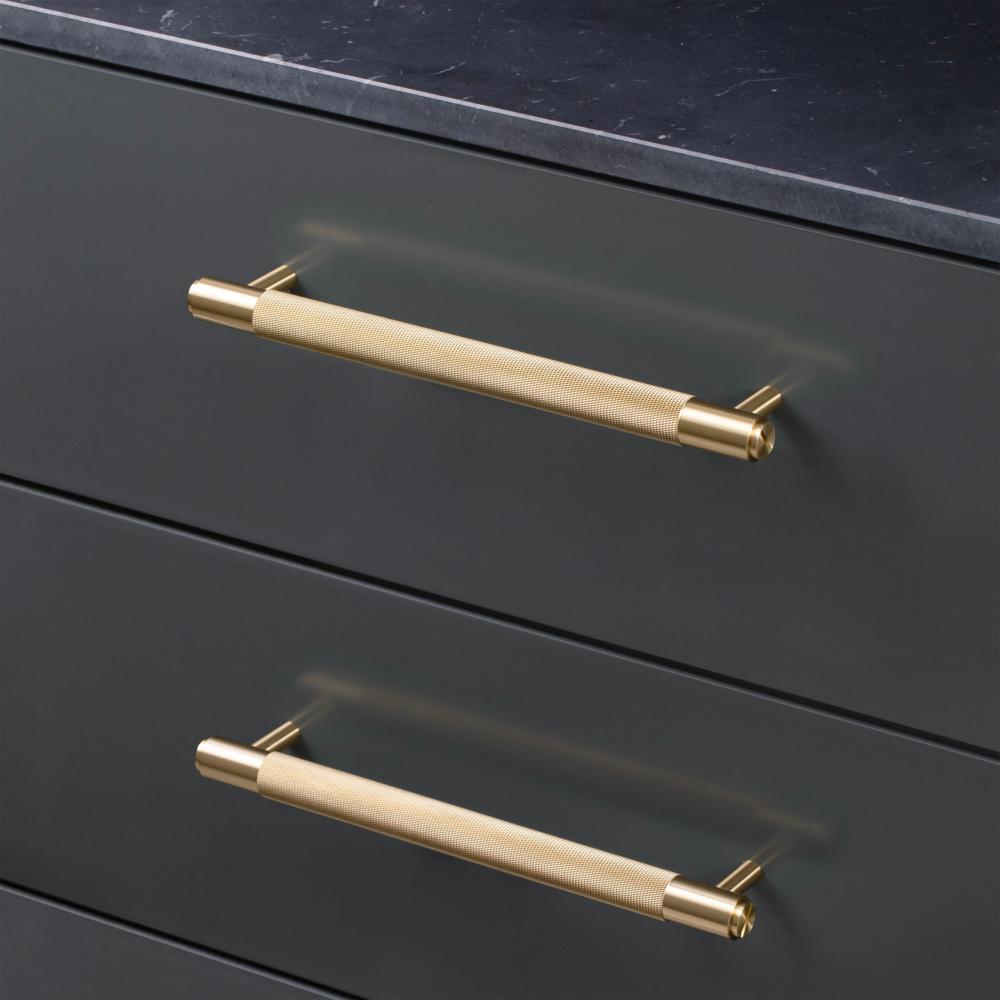 A pull bar made from solid brass. This pull bar features our signature, diamond-cut, cross-knurl pattern and is refined by hand.