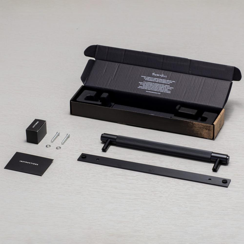 A small pull bar made from solid metal and featuring our cross-knurl pattern.