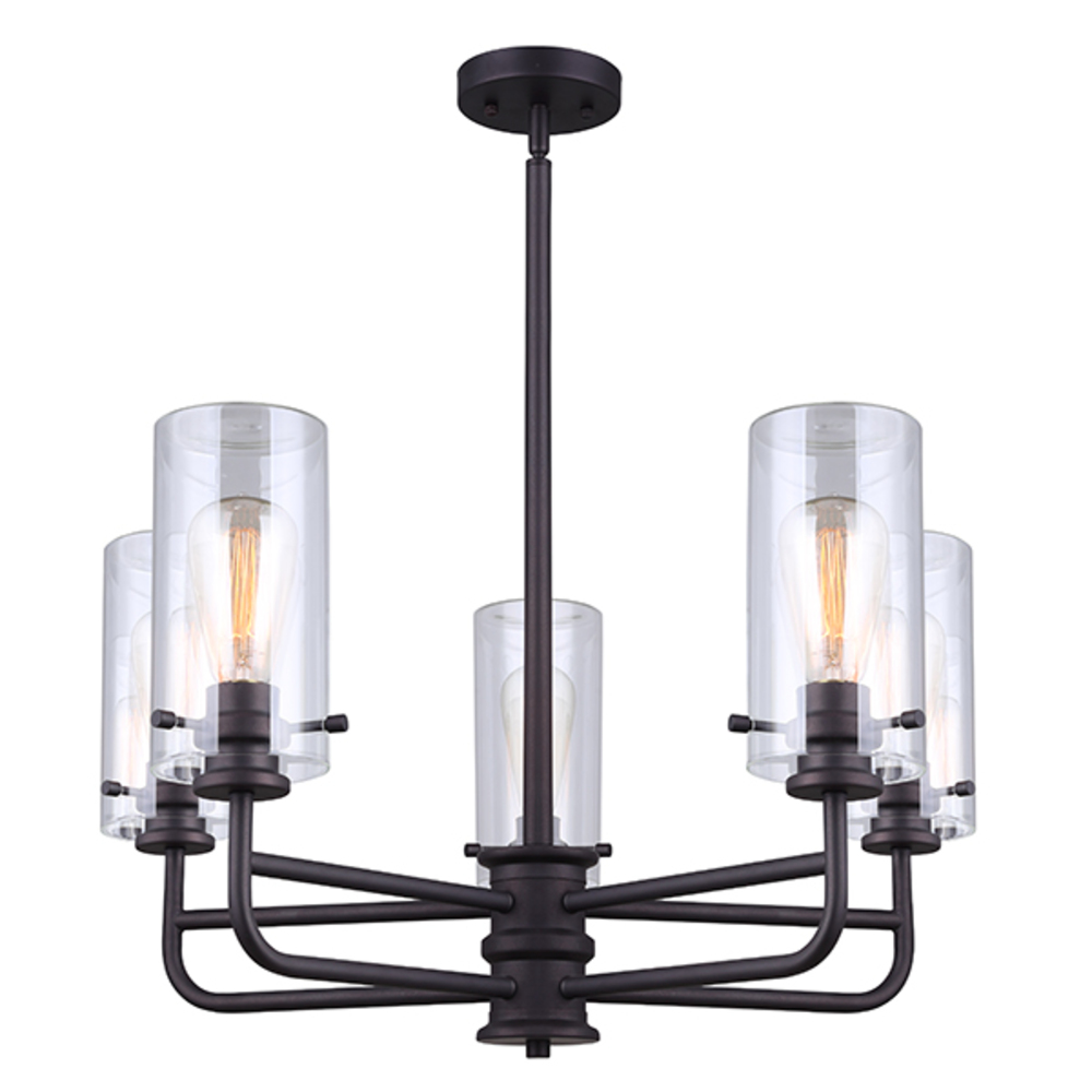 ALBANY, 5 Lt Rod Chandelier, Clear Glass, 60W Type A, 24" W x 19 1/2" - 42 1/2" H