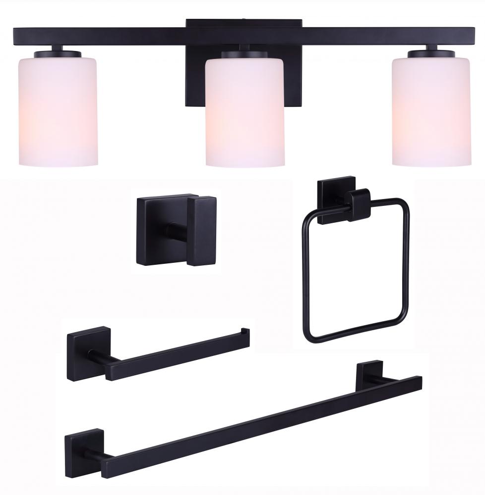 Bath Accessories and Vanity Combo, JAE MBK Color -G-, Towel Ring, Robe Hook, Tissue Holder, Towel Bar, 3 Lt Vanity, 60W Type A, Easy Connect Included