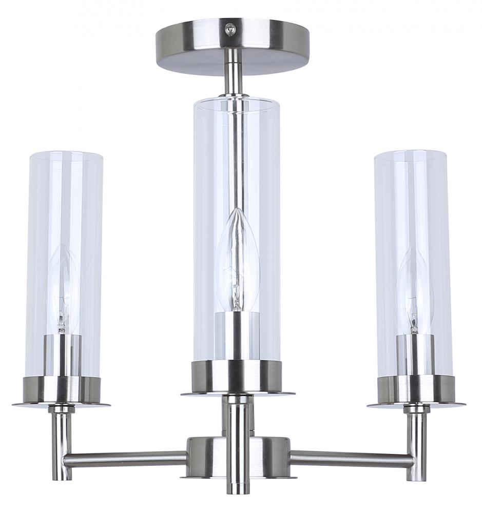 BENSON, ISF1205A03BN, 3 Lt Semi-Flush, Clear Glass, 60W Type C, 16inch W x 14inch H