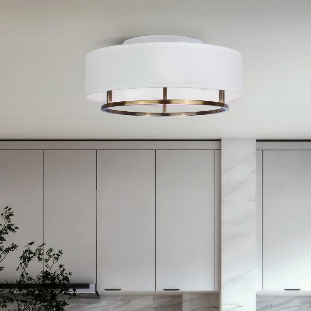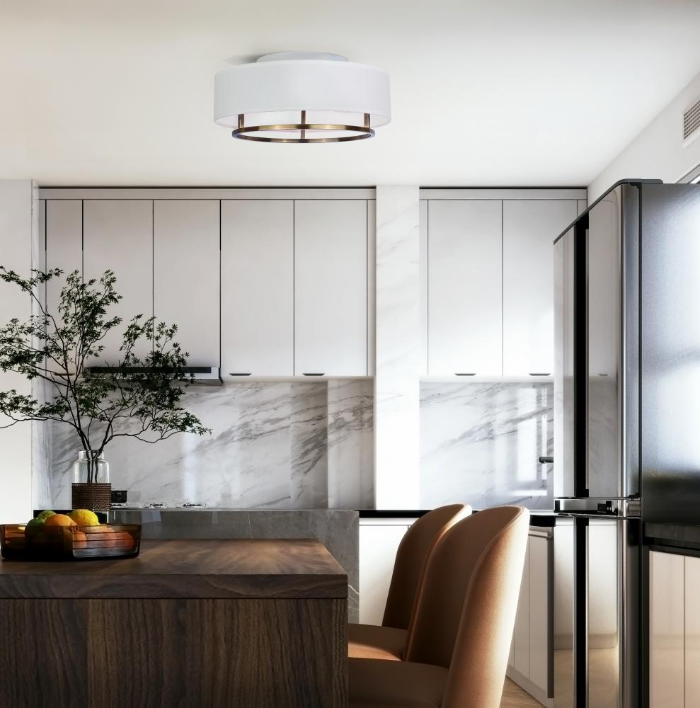BONNIE, IFM2191B15GD, 2 Lt Flush Mount, White Fabric Shade, 60W Type A, 15inch W x 6.5inch H