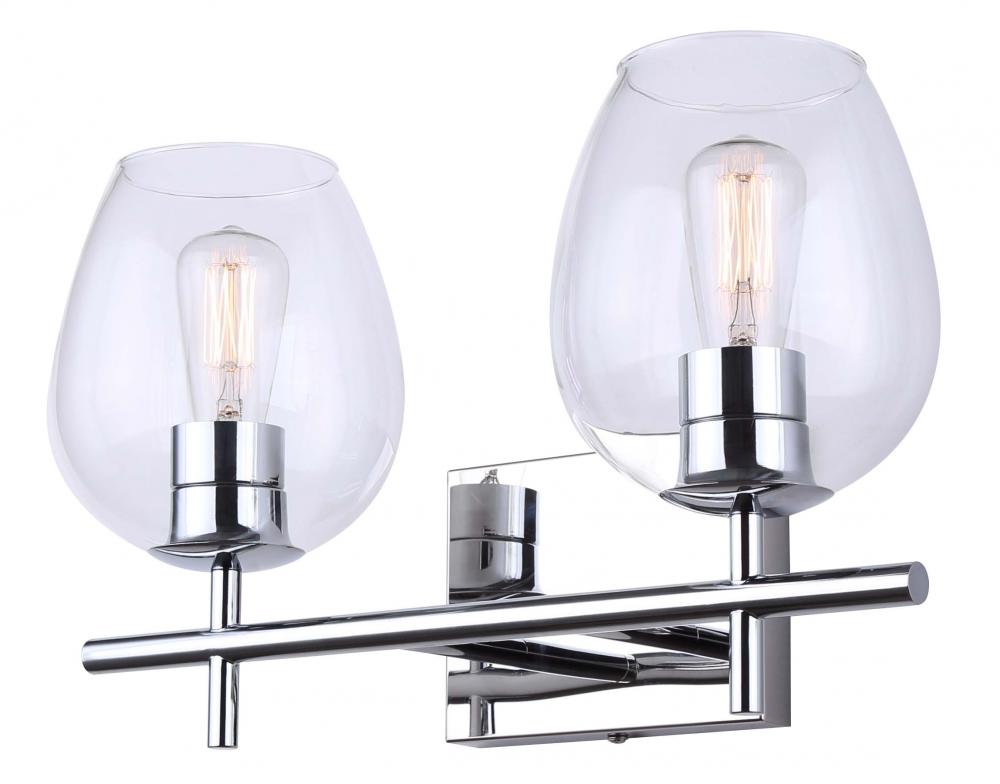 CAIN, IVL1019A02CH, 2 Lt Vanity, Clear Glass, 100W Type A, 15.75" W x 9.5" H x 7.25" D