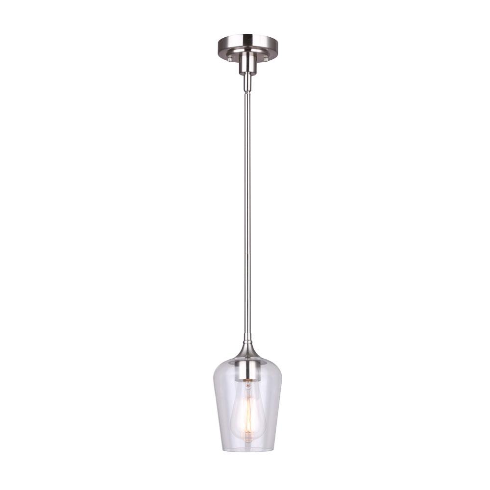 CONALL, IPL1102A01BN, 1 Lt Rod Pendant, Clear Glass, 60W Type A, 5" W x 12 - 60" H
