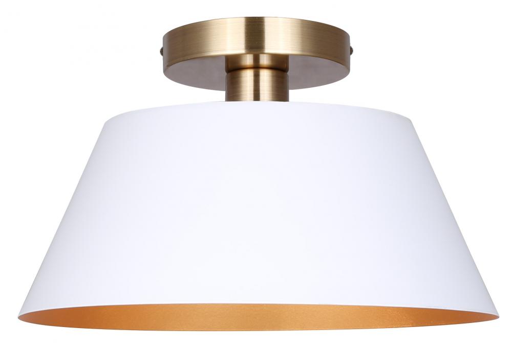 DAXTON 12.75 in. 1-Light 60-Watt Modern Semi-Flush Mount with Matte White Metal Shade