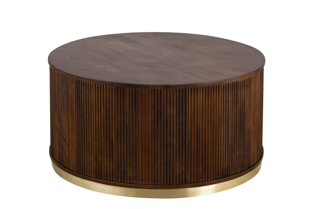 Meet the Delaney Coffee Table, a stunning fusion of mid-century modern charm and contemporary elegance. Crafted from durable mango wood, this table features a striking ribbed design that exudes texture and depth. The gold trim accent adds a touch of refinement, creating an earthy yet sophisticated feel that complements any room. With its spacious 36-inch tabletop, the Delaney Coffee Table serves as the perfect centerpiece for your living room, inviting both style and functionality. Ideal for those who appreciate timeless design and attention to detail, this coffee table is a statement piece that enhances any interior decor.