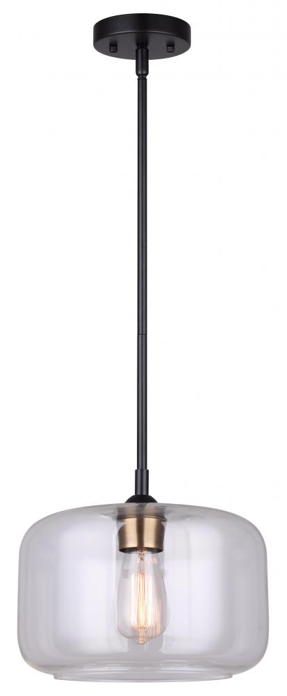 FAUNA, IPL778B01BKG, MBK + GD Color, 1 Lt Dual Mount Rod Pendant, Clear Glass, 60W Type A, 11inch W x 10 - 59.5inch H
