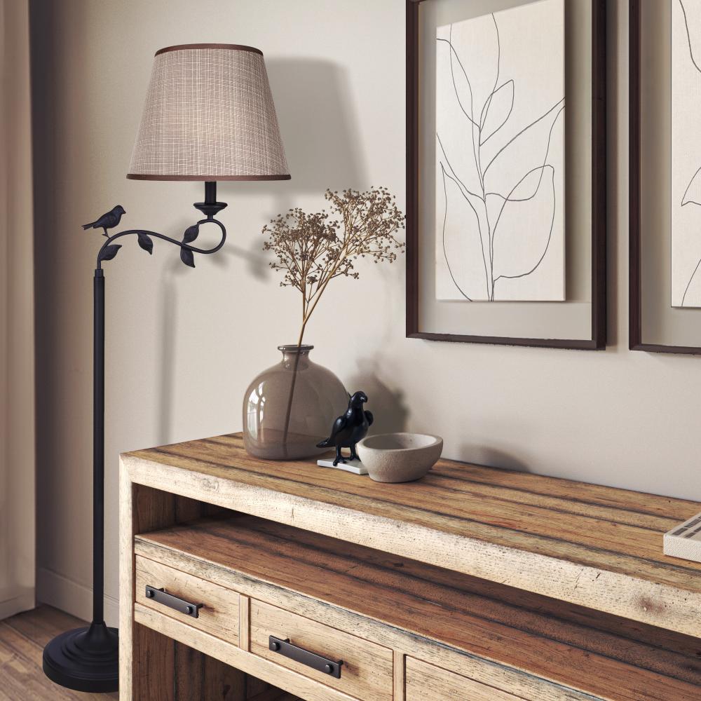 The Havran 1-Light Floor Lamp combines classic design with modern functionality, making it an elegant addition to any living space. Featuring an oil-rubbed bronze finish and a natural fabric shade, this lamp offers a sophisticated yet versatile look that blends seamlessly with various decor styles. Its 3-way socket switch provides adjustable brightness, allowing you to create the perfect ambiance for any occasion. With a sturdy metal construction and a slim profile, it fits comfortably in tight spaces while delivering powerful illumination from a 150W Type A bulb (not included). Easy to assemble and built to last, this lamp offers both style and convenience for your home.