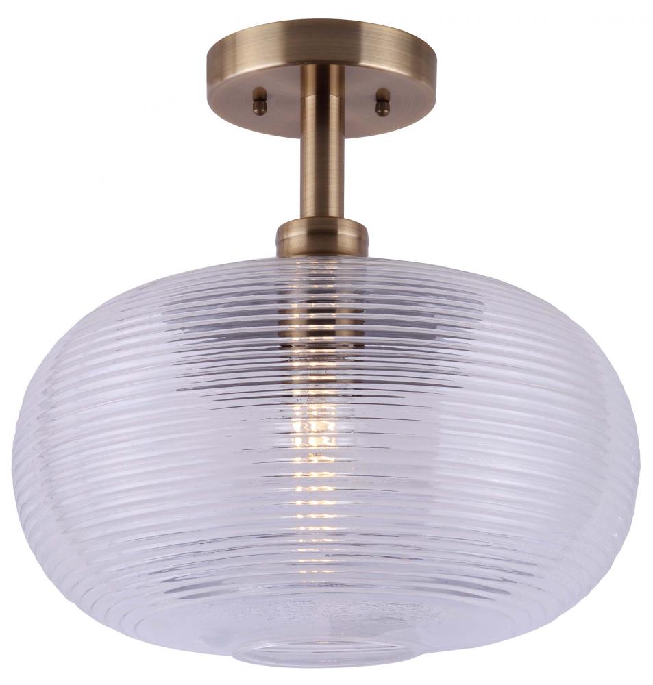 IVAH, ISF744B01GD, 1 Lt Semi-Flush, Clear Textured Glass, 60W Type A, Easy Connect Included