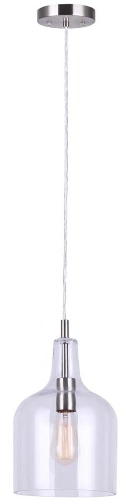 KEEVA, IPL1059A01BN, 1 Lt Cord Pendant, Clear Glass, 60W Type A, 7.625inch W x 16 - 62.75inch H