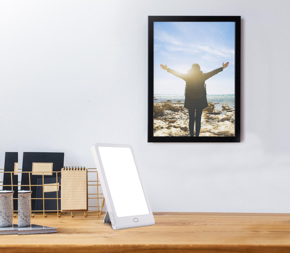 LH01WH-C, Therapy Lamp, PC Diffuser, Touch Dimming, Time Function, 10W LED (Integrated), 650 Lumens, 4700K Color Temperature, 5.5inch W x 9.5inch H x 0.75inch D