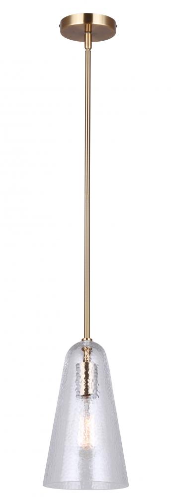LUISA, IPL1144A01GD, 1 Lt Rod Pendant, Hammered Glass, 60W Type A, 5.875inch W x 19 - 61inch H