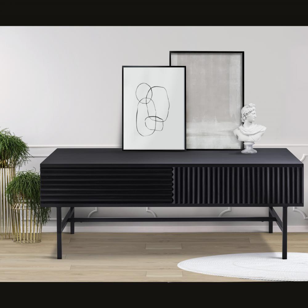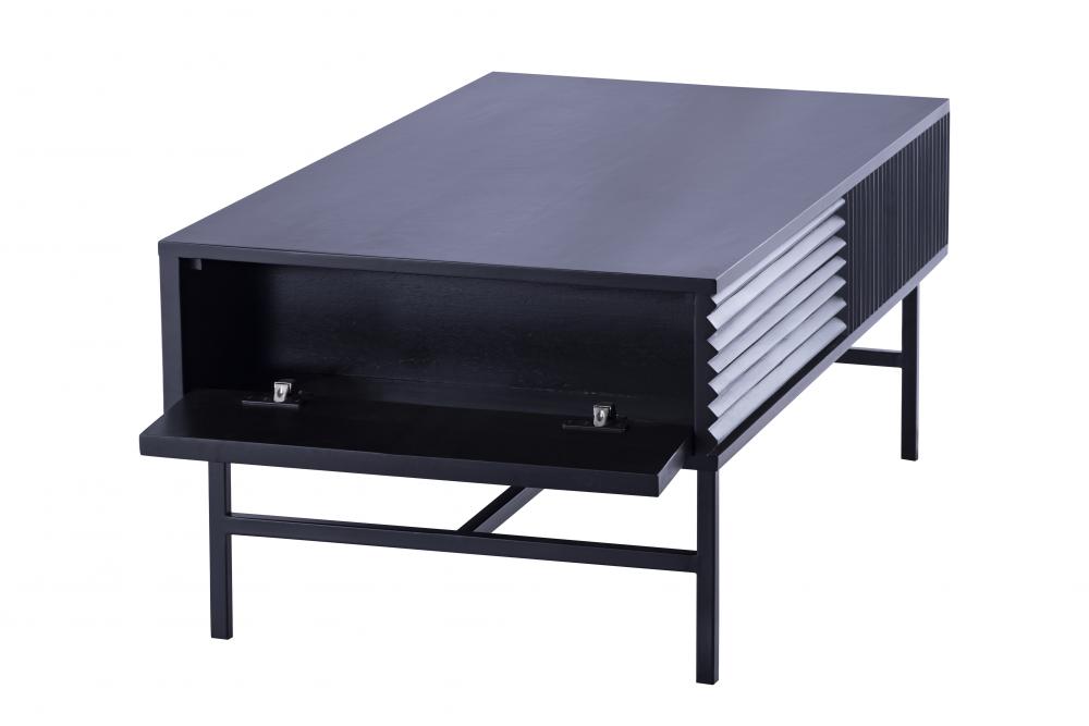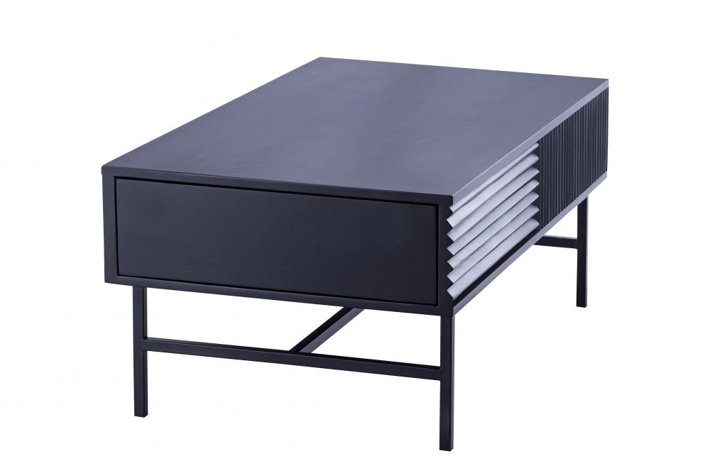 Modern and Sophisticated Design: The MEZ Black Finished Coffee Table features a sleek silhouette with a unique ribbed design on the sides, adding texture and depth to any room.