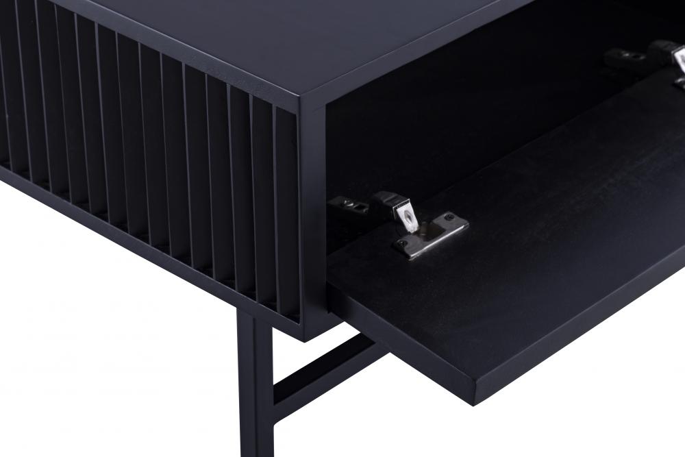Introducing the MEZ Black Finished Coffee Table, a perfect combination of modern design and functional elegance. This coffee table features a sleek and sophisticated silhouette, crafted from high-quality iron and finished in a luxurious black. The unique ribbed design on the sides adds texture and depth, making it a striking focal point in any room.