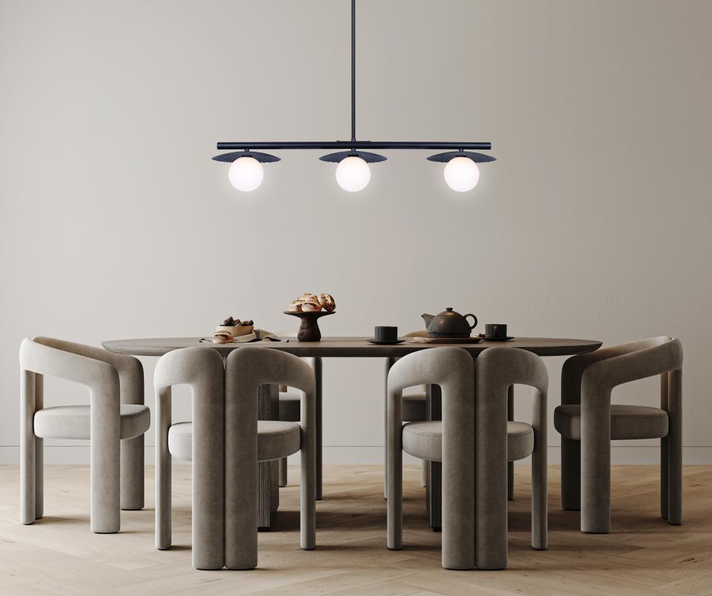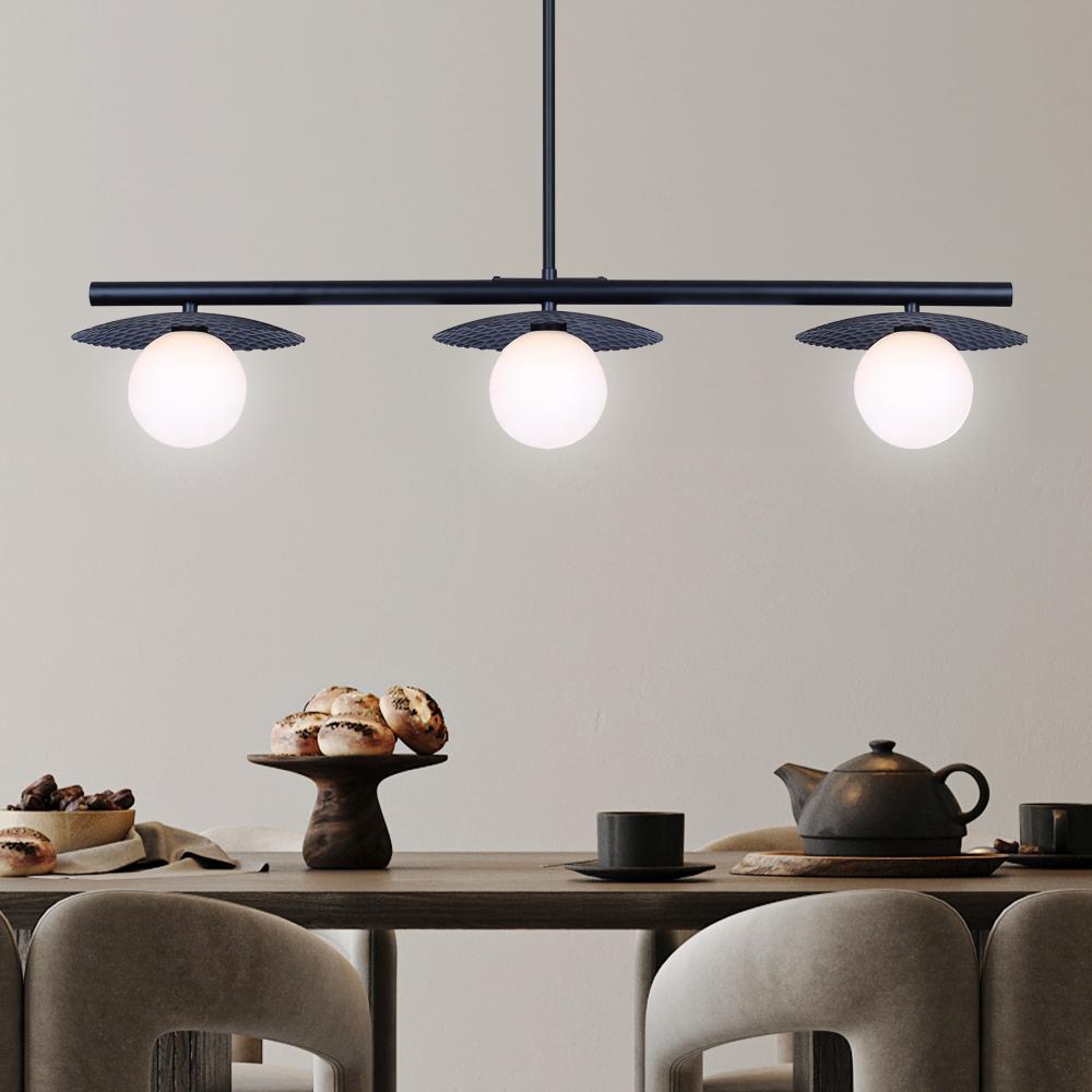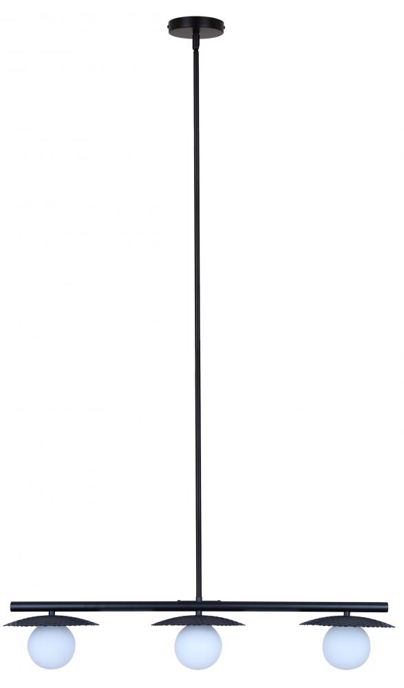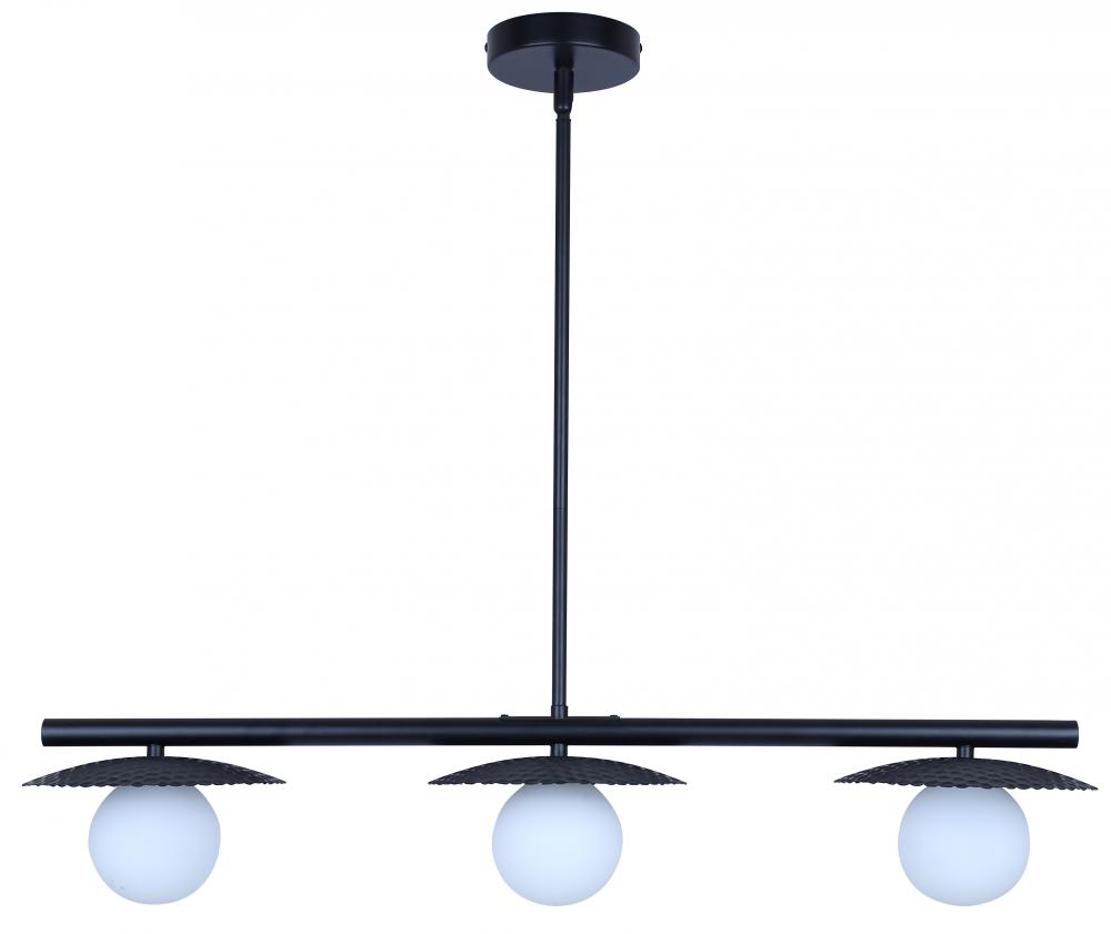 MIERKA, IPL1209A03BK9, MBK Color, 3 Lt Rod Pendant, Flat Opal Glass, 40W Type G9, 32.5inch W x 14.625 - 56.625inch H x 7.875inch D