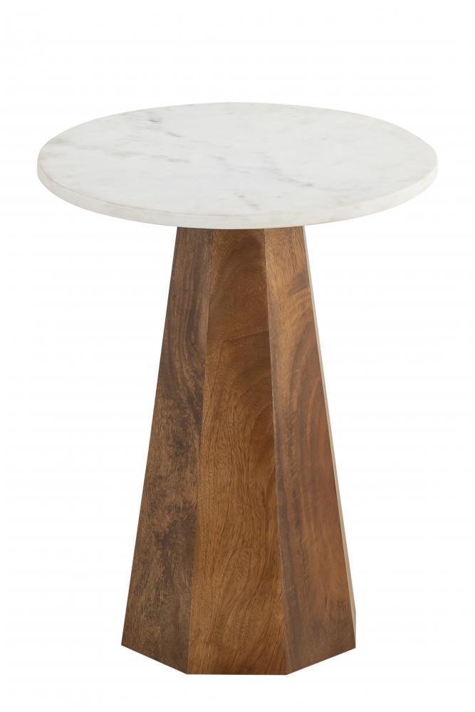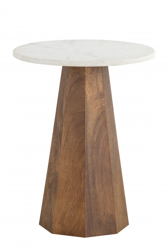 Introducing the NAYA Natural Wood Side Table, a perfect blend of rustic charm and modern elegance. This side table features a beautifully crafted natural wood base that showcases the rich grain patterns and textures, providing a warm and inviting feel to your home. The sturdy base is complemented by a smooth, white marble top, offering a sophisticated contrast and creating a stunning visual appeal.