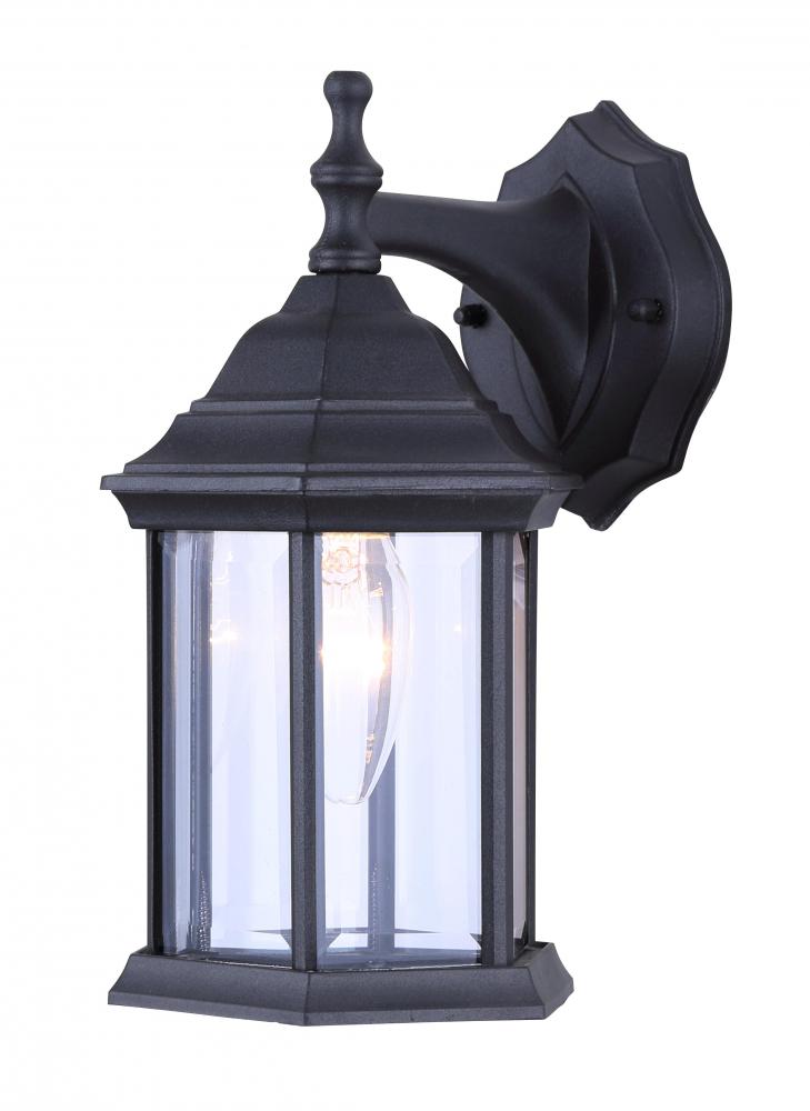Outdoor, IOL4 BK, 1 Bulb Downlight, Clear Bevelled Glass Panels, 100W Type A , 6 .25 IN W x 12 IN H x 8 IN D