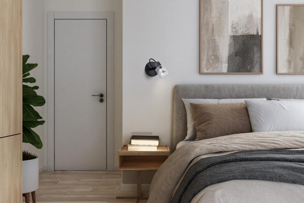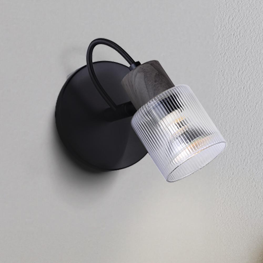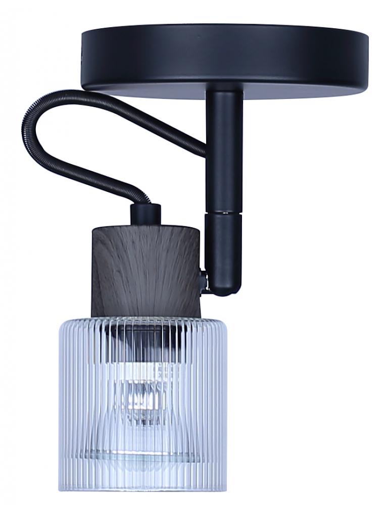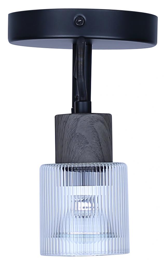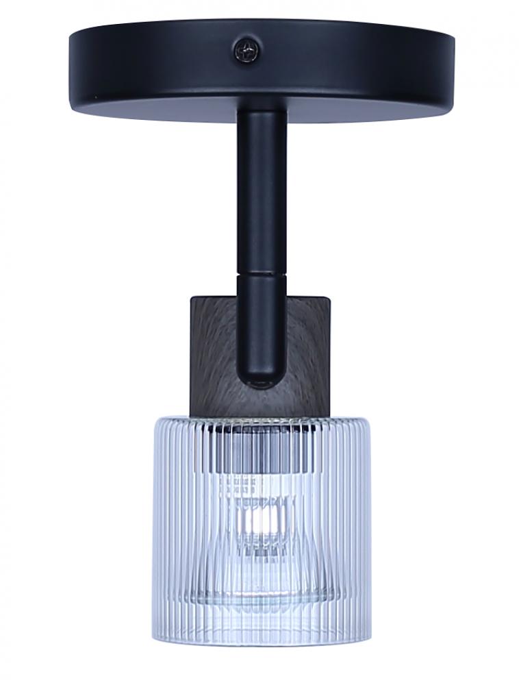 OWEN, ICW1198A01BKW10, MBK + Faux Wood Color, 1 Lt Ceiling or Wall, Clear Ribbed Glass, 50W Type GU10, 5.25inch W x 7.25inch H x 4.75inch D, Easy Connect Included
