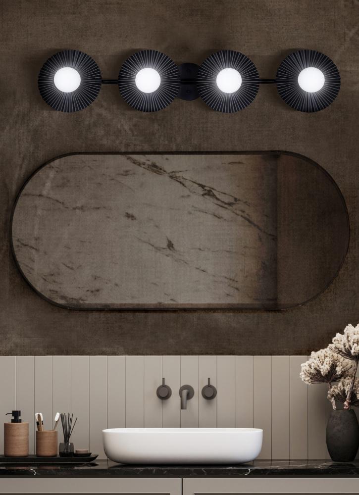 Payton 4 Light Vanity Matte Black with Opal Glass Shades