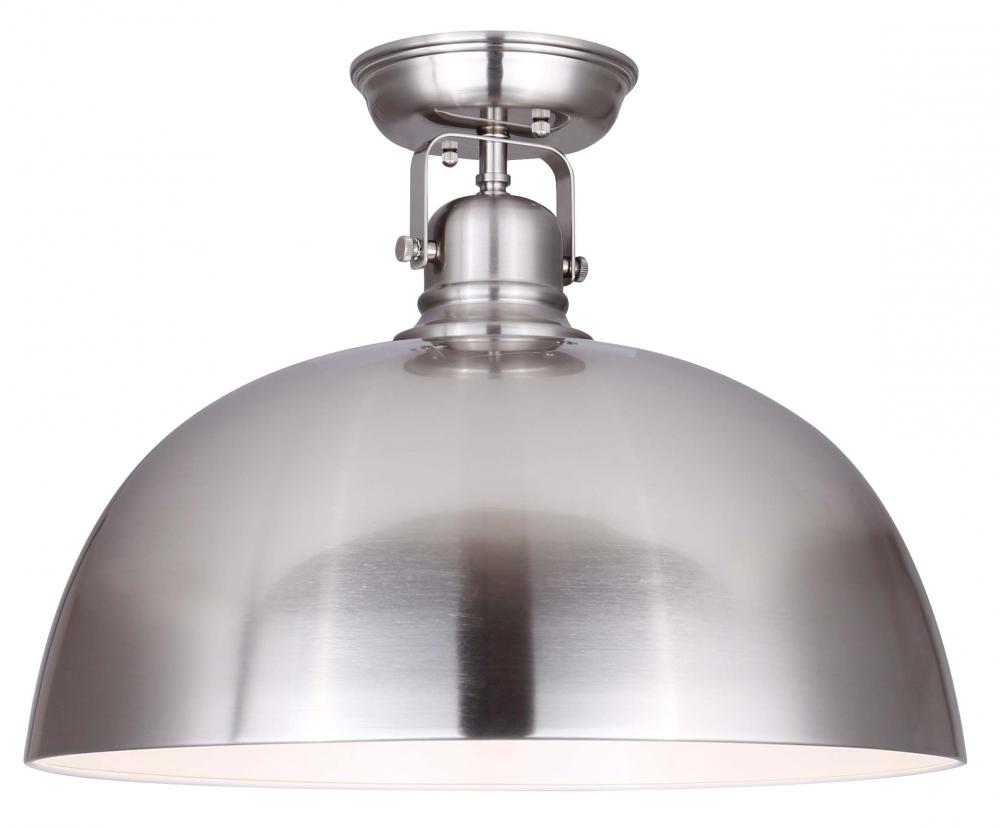 Polo 1 Light Flush Mount, Brushed Nickel Finish, 12.25 in. H x 16 in. W x 16 in. D, Modern Style