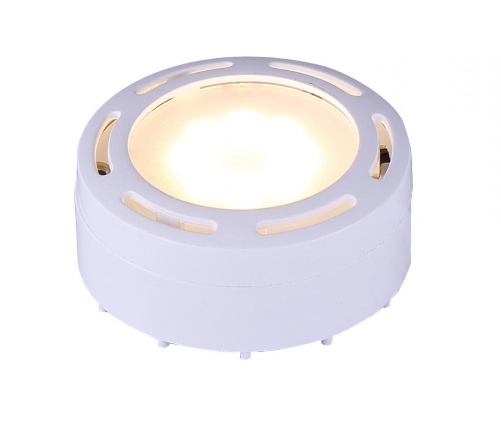 Single White LED Puck Light: 8 LED, 3000K, 320 Lumens, 4W, with connector cord