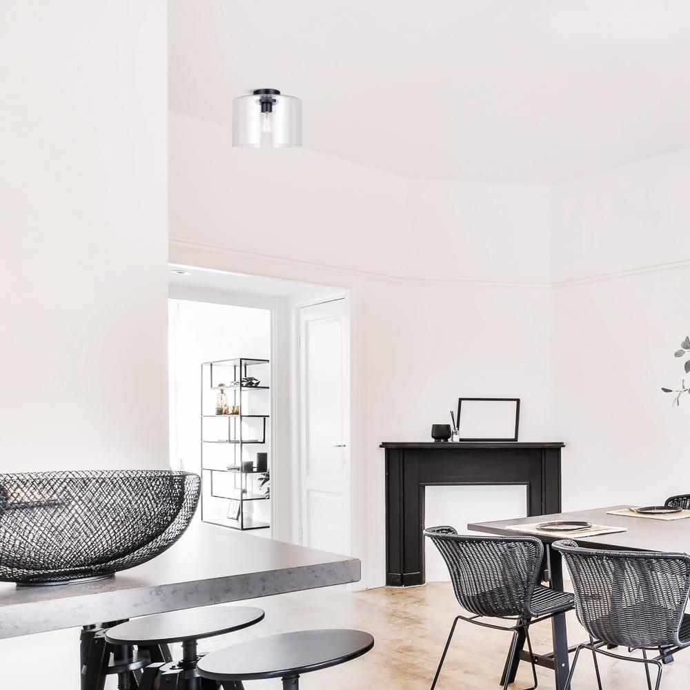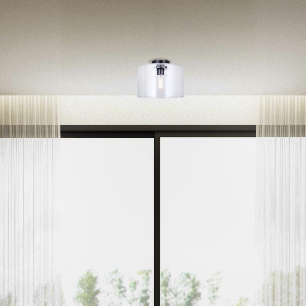Introducing the SKLO Flush Mount Ceiling Light, a perfect blend of modern elegance and sleek functionality. This minimalist fixture, with its matte black finish, effortlessly complements any contemporary décor, adding a touch of sophistication to any room. The clear glass shade encases a single 100W Type A bulb, providing ample illumination while maintaining a refined, unobtrusive design. Measuring 12 inches wide and 9 inches high, the SKLO is ideal for spaces where subtlety meets sophistication. Its streamlined silhouette and timeless appeal make it a versatile choice for living rooms, bedrooms, or entryways. Elevate your home with the SKLO, a piece that embodies the essence of modern minimalism.