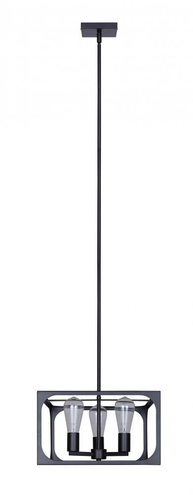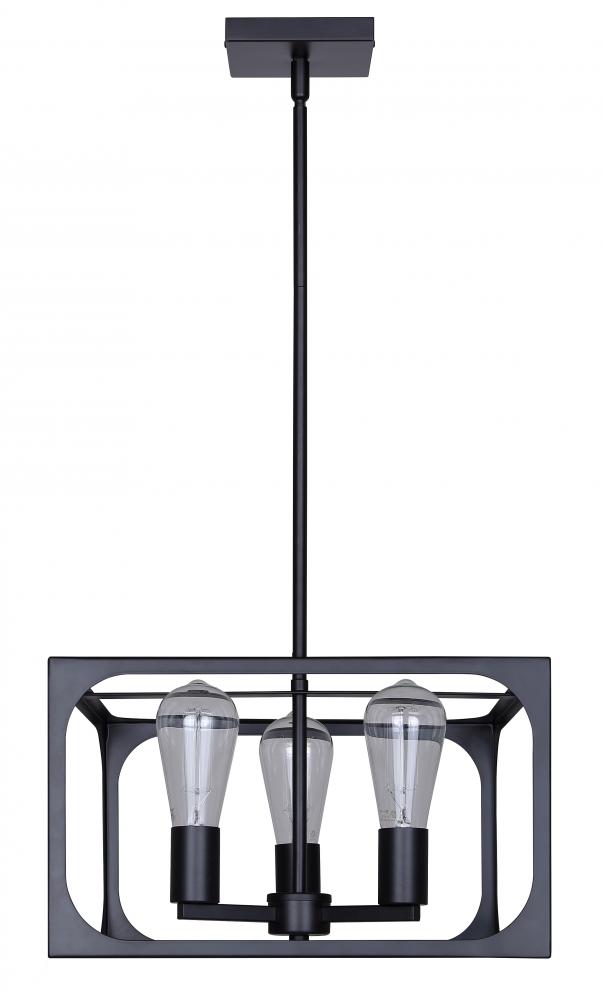 ZELIE, ICH2180B03BK14, MBK Color, 3 Lt 13.75inch Width Rod Chandelier, 60W Type C, 13.75inch W x 16.875 -582875inch H x 13.75inch D