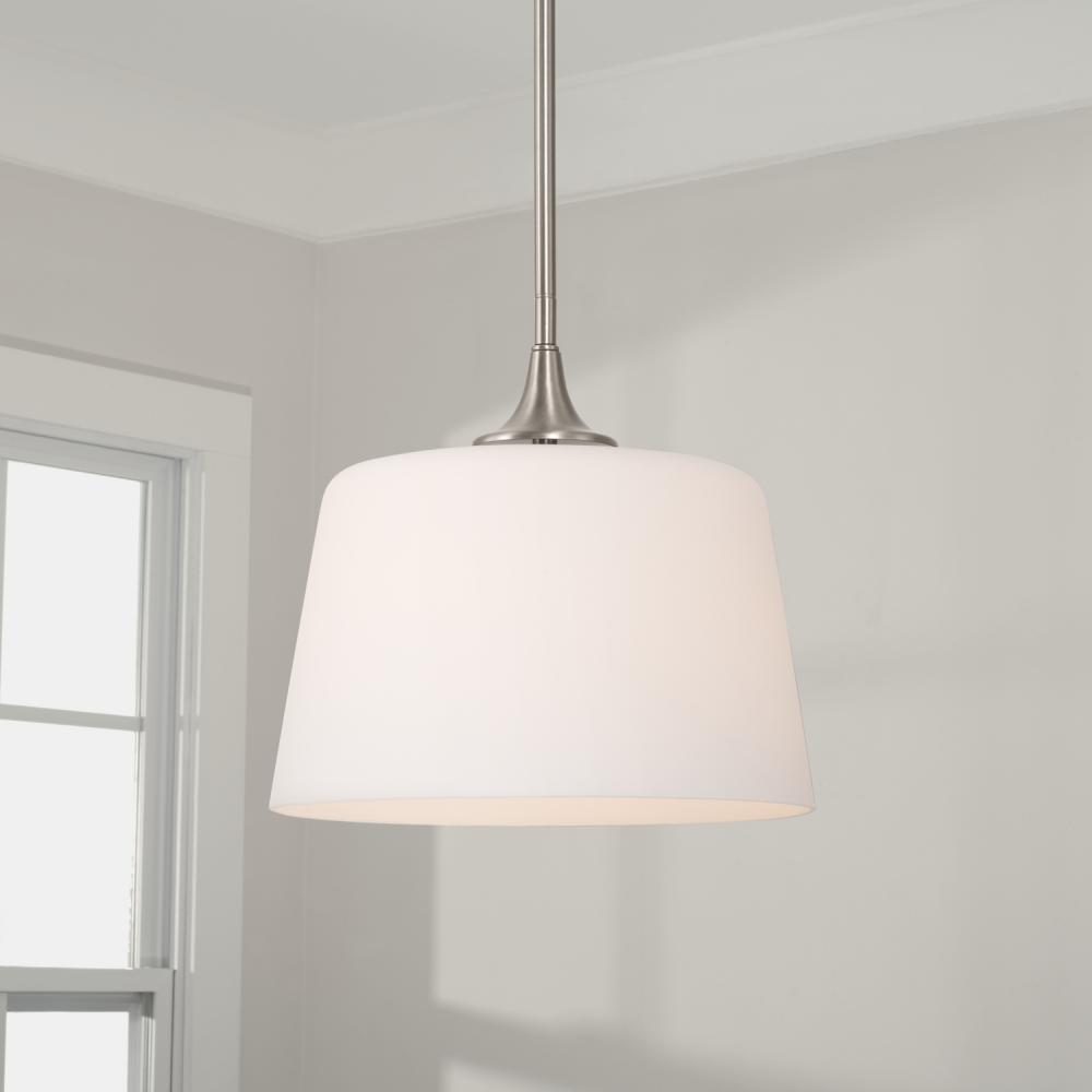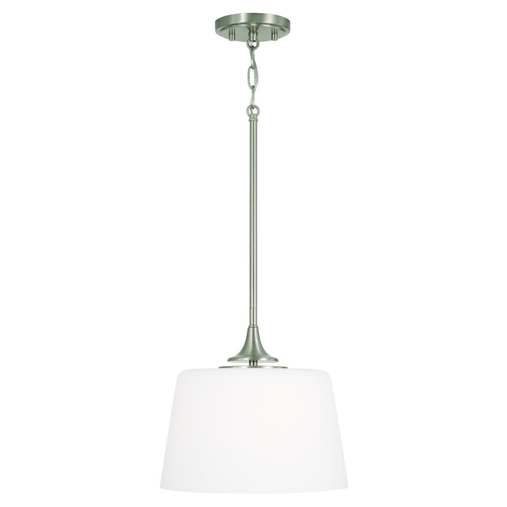 11.75"W x 11.25"H 1-Light Dual Mount Pendant or Semi-Flush in Brushed Nickel with Soft White Glass