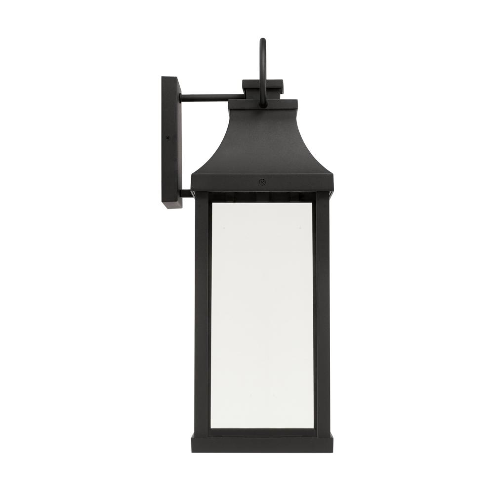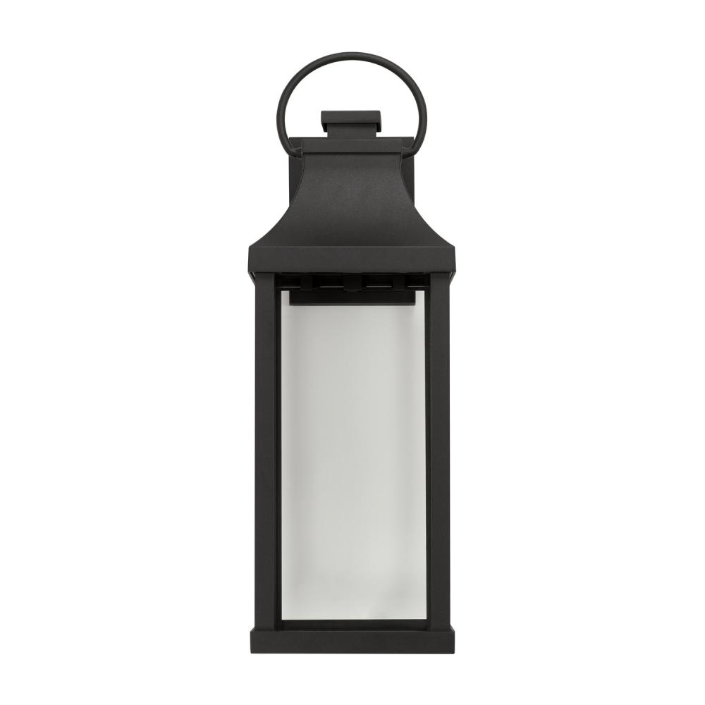 Transitional meets modern with the Bradford Low Light Medium Wall Lantern. The bold lines and an oversized ring in a Black finish adds classic curb appeal to your home. This fixture is designed for minimal light emissions and is part of our Rain or Shine Collection and backed by our five-year warranty.