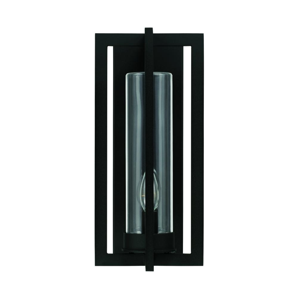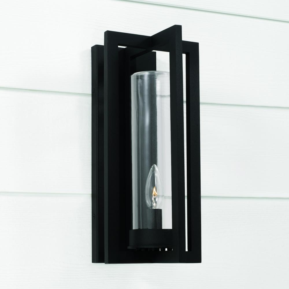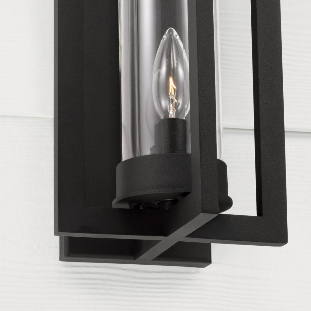 7"W x 15"H 1-Light Outdoor Wall Lantern in Black with Clear Glass Cylinder