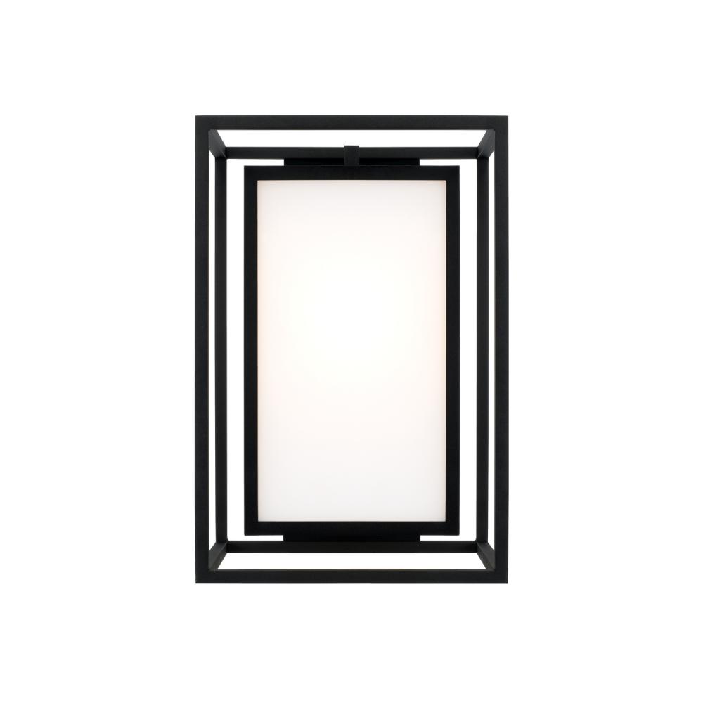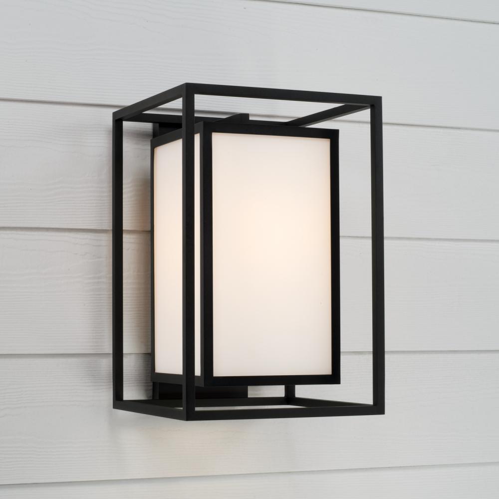 Neat and contemporary, the Aiden Outdoor Wall Lantern creates the illusion of floating light with inner and outer rectangular forms. The Soft White glass panes cast a warm glow to perfectly complement the squared silhouette, while the Black finish delivers a distinct aesthetic. Part of our Rain or Shine Series and backed by our five-year warranty.
