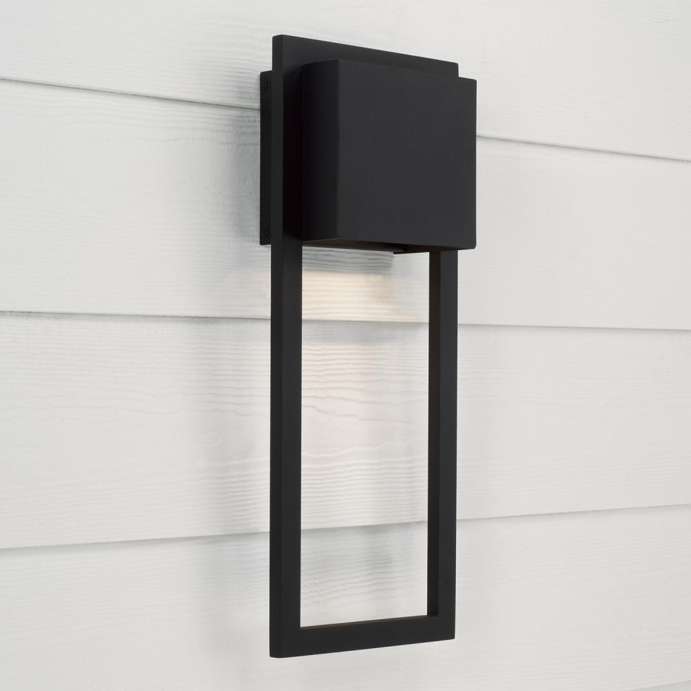 Invite sleek style outdoors with the Nate Large Wall Lantern. The streamlined rectangular ADA silhouette delivers minimalist design, while the powder coated Black finish creates durability and modern appeal. This fixture is purposefully designed for minimal light emissions. Part of our Rain or Shine Collection and backed by our five-year warranty against rusting or fading.